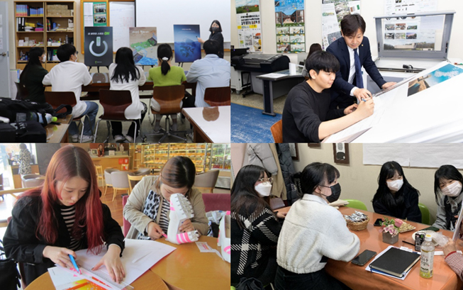 PBL/플립러닝(Flipped Learning) 등 다양한 수업방식과 토론및 그룹활동등을 통해 창의적 아이디어 발상을 개발하고 실제적 작업물을 제작할 수 있는 능력을 키워주는 캡스톤디자인 수업과 기업 맞춤형 혁신 수업 제공