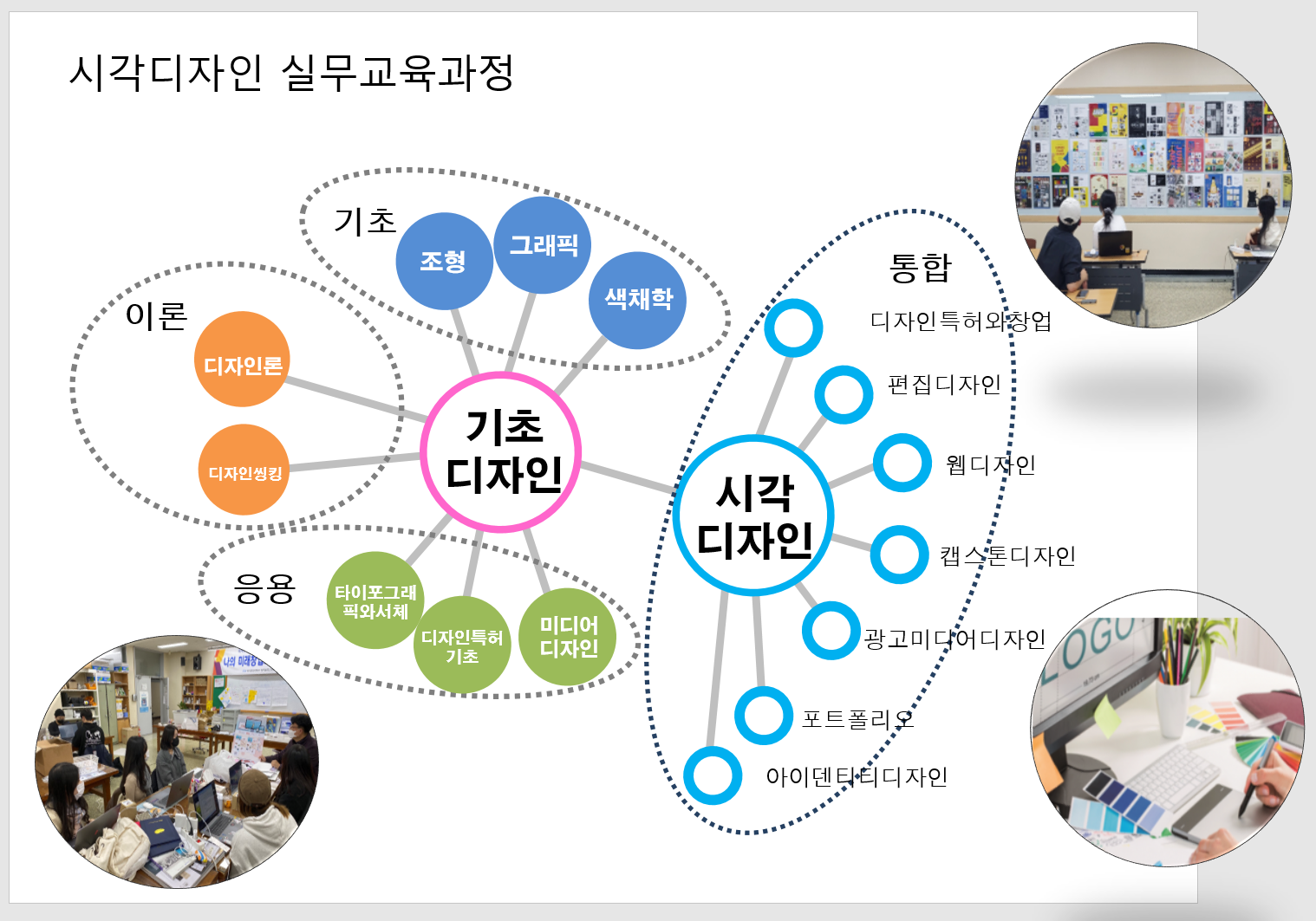 드로잉, 기초조형, 타이포그래픽, 색채학, 디자인특허기초