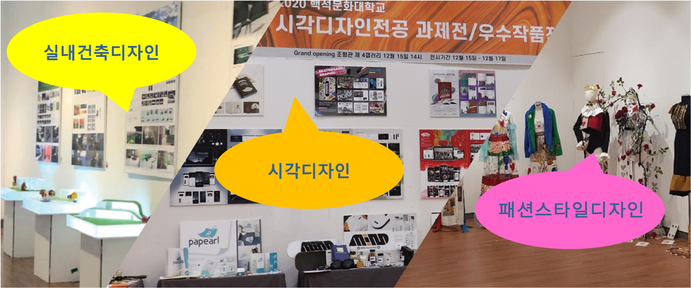 교육과정 이수를 통해서 자신들만의 실적과, 장점을 사회에 어필할 수 있는 기회를 얻게 해주는 학교, 백석문화대학교 디자인학부에서만 가능합니다.