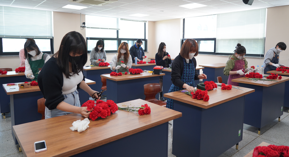 재학생들의 질 높은 교육환경 조성을 위해 화훼장식, 가드닝 수업을 위한 다양한 화훼재료와 기자재의 적극 지원 및 실습과목별 전문 실습실 구축